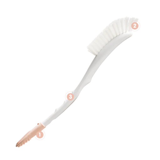 The extra-soft, removable TPE ribbed-tipped handle is specially made for cleaning teats and other hard to reach places ensuring cleanliness with minimal risks of damage.