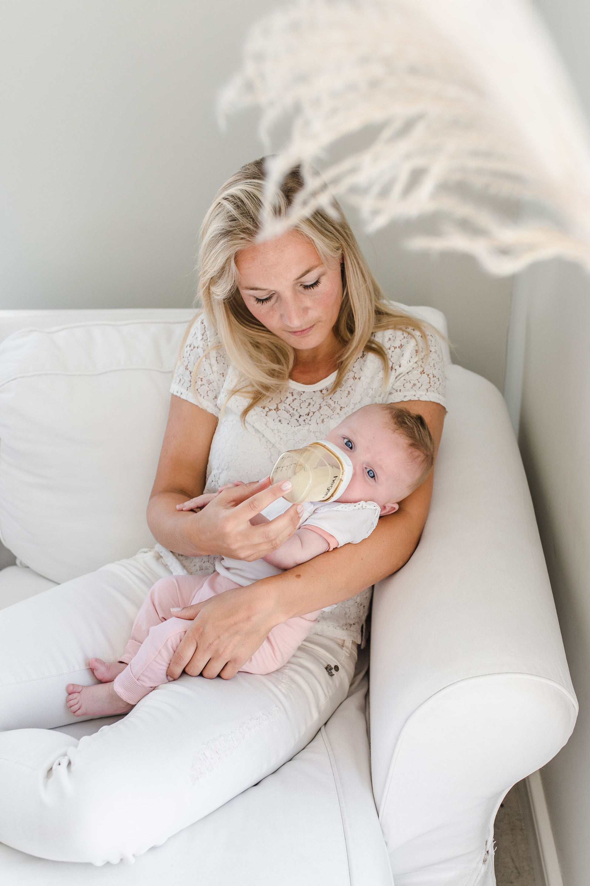 Hegen’s super soft teats are asymmetrical and off-centre to allow for a natural upright feeding position at a 20 degrees tilt, similar to nursing from the breast. This minimises the tilt that conventional baby bottles require, reducing the risk of milk back-flow which may cause mid-ear complications.