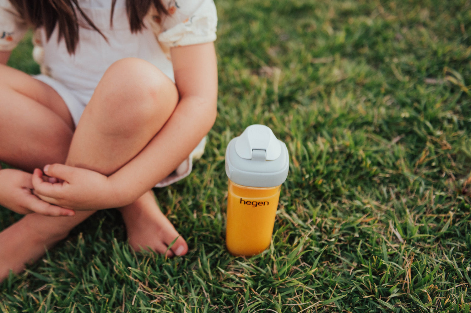 A drinking bottle for the whole family, Hegen's Drinking Bottle is the first of its kind drinking bottle with a unique one-hand closure. Useful for parents with their hands full, no screw threads, just Press-to-Close, Twist-to-Open™!