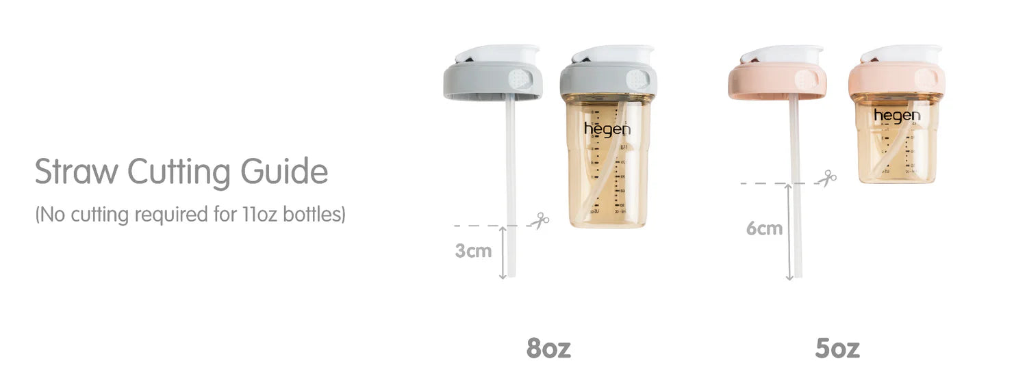 The Hegen straw cup is designed for babies age 9 months and above to encourage natural sucking and the development of oral-motor muscles. They can be converted into different uses with a simple swap of the lids.